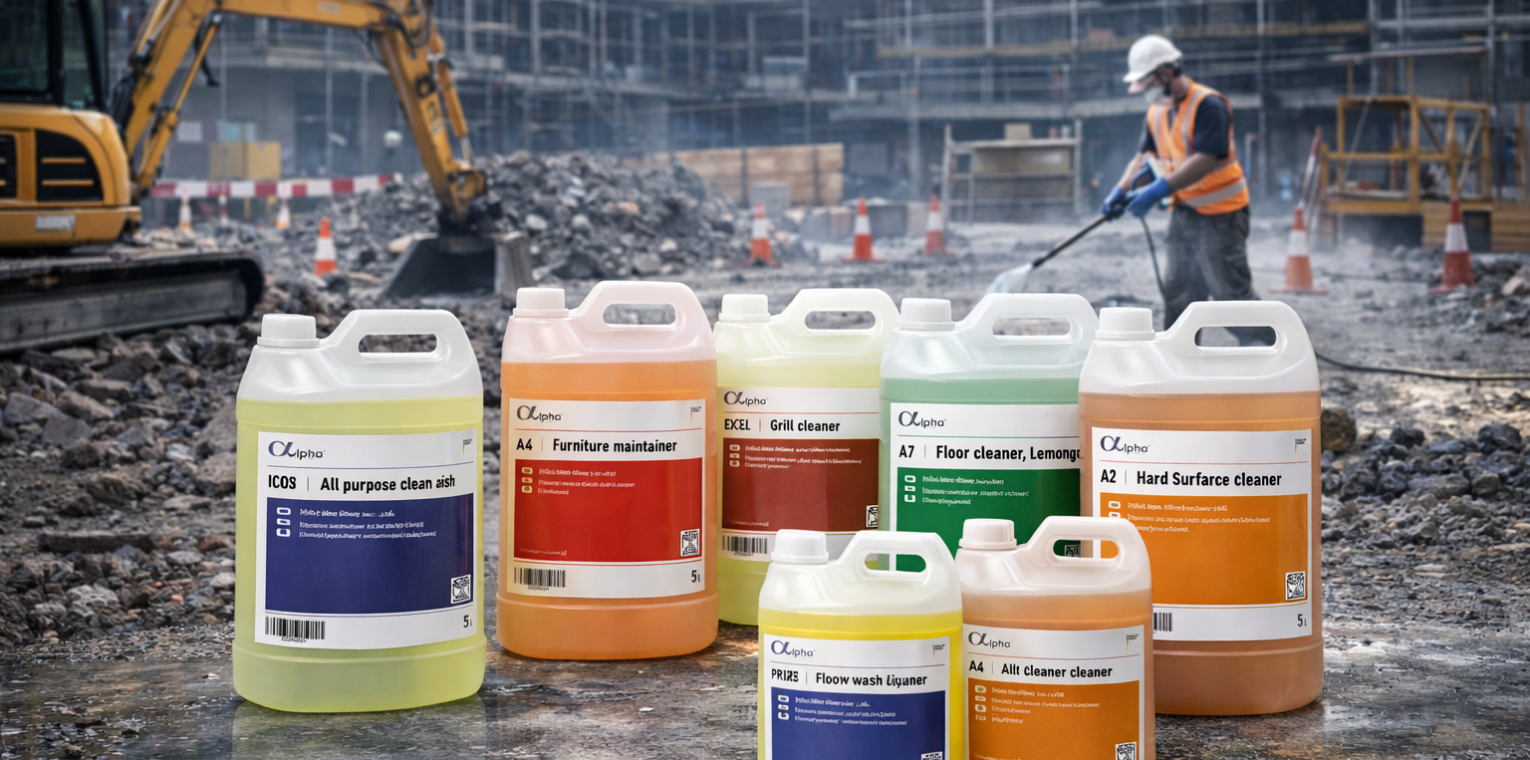 Construction sites demand strong, reliable cleaning solutions that can handle dust, debris, cement residue, and heavy-duty grime. Our construction cleaning chemicals are formulated for performance, safety, and environmental responsibility, ensuring clean and compliant project sites.